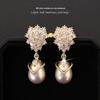 S925 Silver Zircon Teardrop Pearl Earrings - High-End Luxury Retro Design.