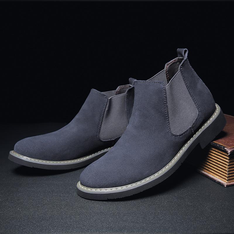Autumn and Winter High Shoes Men's Large Size Velvet Cotton Shoes Leather Boots Short Boots Snow Boots Martin Boots Men's Genuine Leather Chelsea