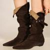 Fashion Western Boots Women's Pointed Toe Suede Sleeve Suede Studded Sleeve Non-Slip Pumps