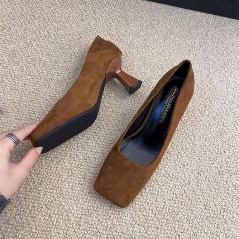 Pumps Ladies Shoe Female Square Toe Sandals 2024 Trend Simplicity Slip-On Footwear Elegant Career Women High Heels Shoes
