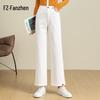Fanzhen Women's High-Waist Cropped Straight-Leg Jeans