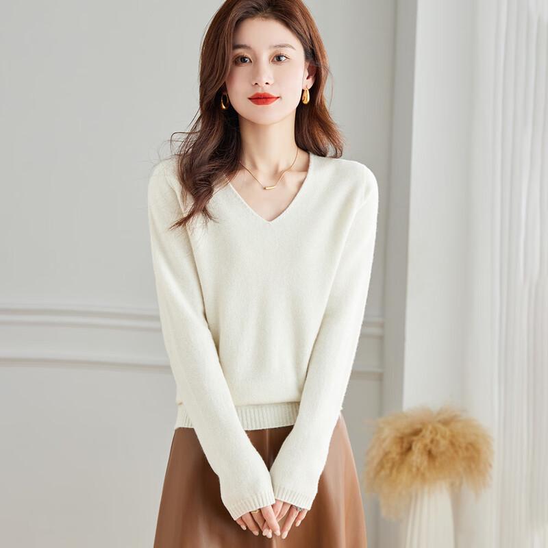 Srcr Women's V-Neck Cropped Wool Blend Sweater