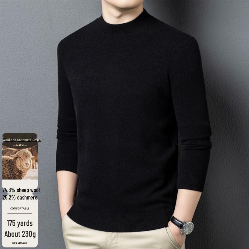 FengXun Men's Wool Cashmere Mock Neck Sweater FXT6557