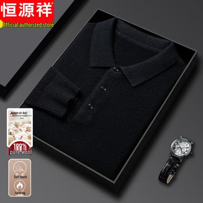 Hengyuanxiang Men's 100% Pure Wool Thickened Polo Collar Sweater