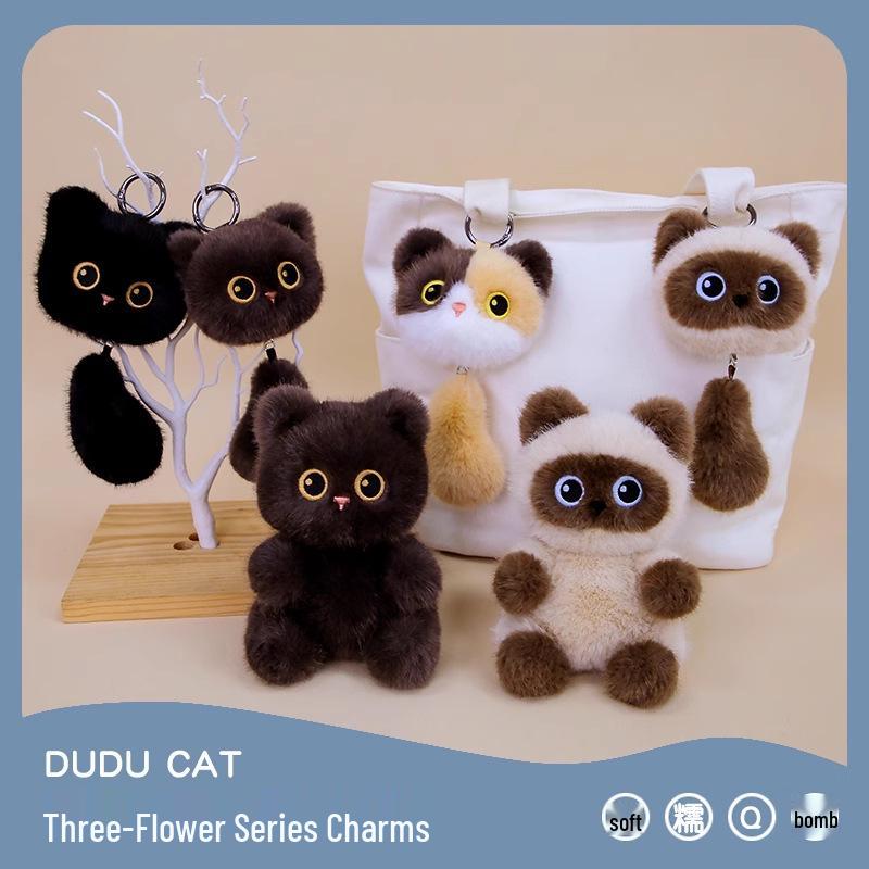 Adorable Cat Plush Keychain Pendant: Black, Calico, Siamese Varieties