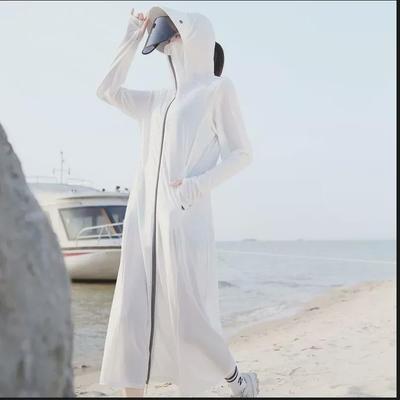 Summer 2024 Women's Long UV Protection Ice Silk Jacket for Beach - Slim Fit, Lightweight, Full Body Coverage