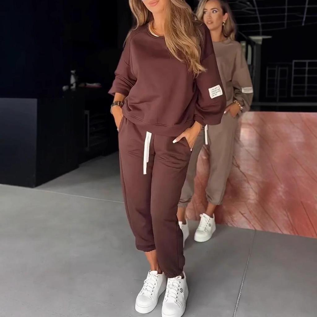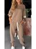 Experience effortless style with this 2025 trendy women's knit two-piece set, featuring a long-sleeve top and wide-leg pocket pants. Designed with unique patchwork and quilted decorations, this set offers both fashion and comfort. Made from high-quality polyester fibers, the outfit is perfect for casual settings, ensuring you look chic while remaining comfortable. The addition of pockets to the wide-leg pants adds practicality to your stylish ensemble, making it a versatile choice for any occasion.