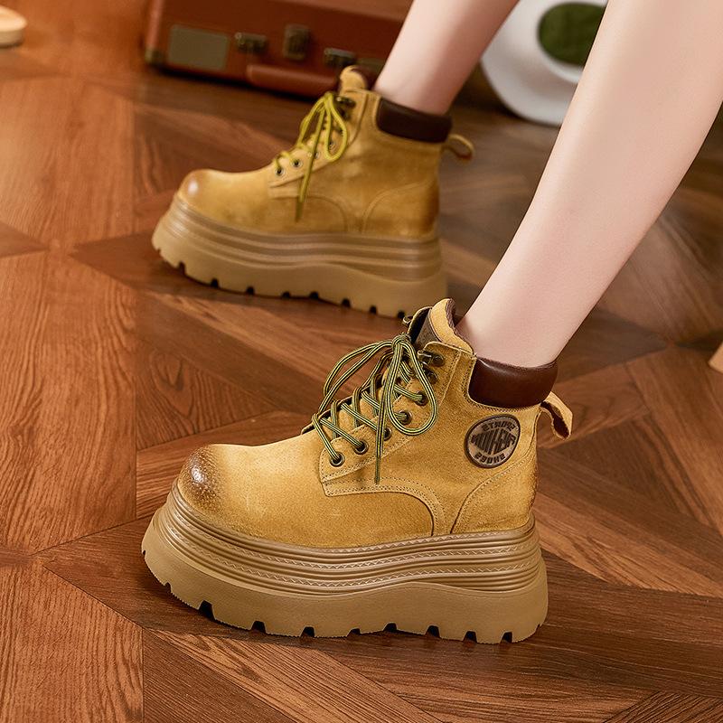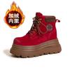 Thick-soled Inner Height-increasing Martin Boots Women's 2025 Autumn and Winter New Rhubarb Boots Medium Tube Velvet Warm Versatile Western Short Boot