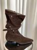 Large Size Pointed Western Cowboy Boots Niche Oblique Neckline Buckle Medium Boots 2025 New Two-wear Stacking Boots