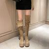 2025 Winter Velvet Warm Knee Boots Women's Retro Lapel Knight Boots Thick Heel Thick Sole Long Snow Boots