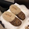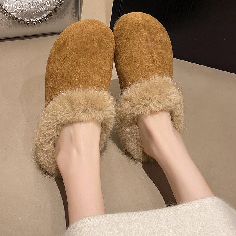 2025 Autumn and Winter New Outer Wear Bag Head Fluffy Slippers Women's Round Head Flat Bottom Half Slippers Plush Fluffy Women's Shoes