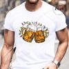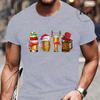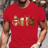Fashionable Merry Christmas Beer Pattern Men's T-shirt Fashionable Trend Drinking Beer Printed T-shirt Fun Christmas Party Shirt Top