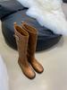 Flat-bottomed Korean Skinny Long Knight Boots Women's Shoes 2025 New Autumn and Winter Black Straight Boots Medium Long Boots