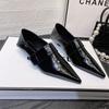 Cowhide~ Japanese Small Leather Shoes 2025 New Versatile Black One-pedal French Pointed Cat Heel Light Mouth Single Shoes