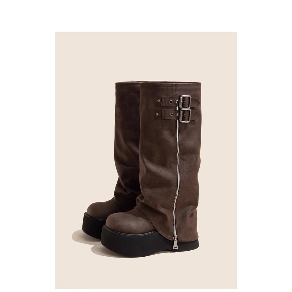 Boots Women's Thick Soles Increase 2025 New Retro Metal Buckle Long Boots Small Trousers Muffin Knight Boots