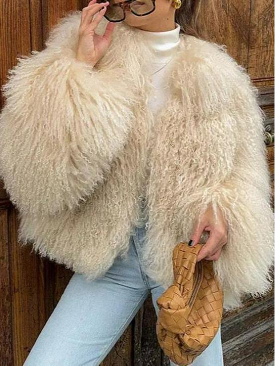 2024 Women's Elegant Solid Color Fur Coat: European & American Style, Long-Sleeved, Winter Warmth