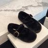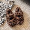2025 Autumn and Winter New Fashion Fluffy Leopard Print Flat Bottom Buckle with Warm Versatile Fluffy Slippers Boken Shoes Women