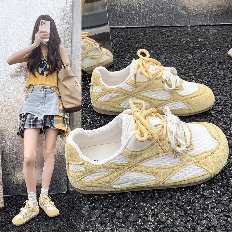 Soft Leather Women's Shoes 2025 Summer New Retro Soft-soled Mesh German Training Shoes Round Head Double Lace-up Sports and Leisure Shoes Forrest Gump