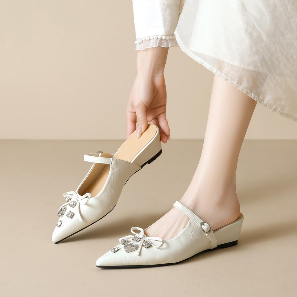Weiwei Girl 966-2 French Pointed Sandals Woman One Word with Platform Bow Rhinestone Bag Head Half Slippers Woman