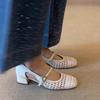 Hollow Word with Square Head Versatile and Versatile 2025 New Thick-heeled Sandals Imitation Leather Women's Woven Fashion Sandals