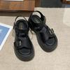Platform Sandals Women's 2025 Summer New Korean Version Fashion Round Head Open-toed Belt Buckle Casual Beach Roman Sandals