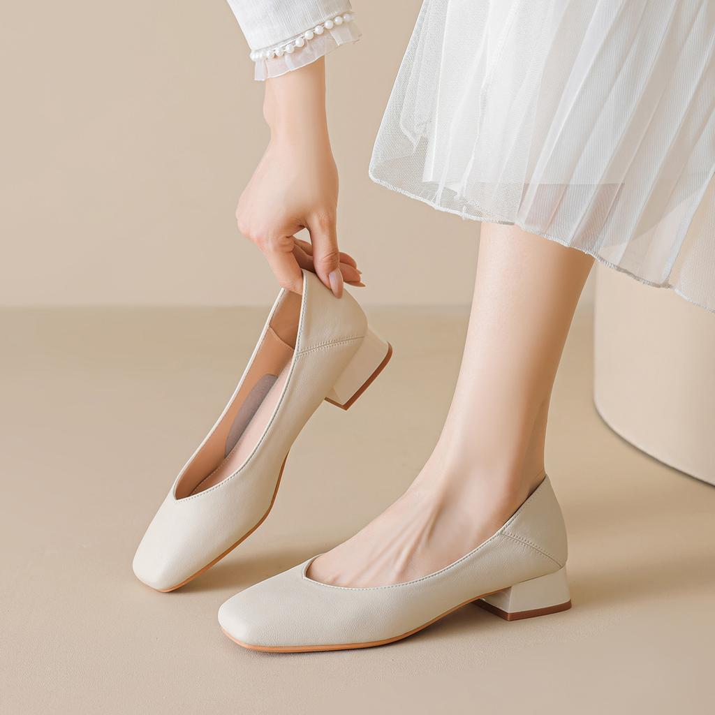 Weiwei Girl 9258-13 Grandma Shoes Women's Thick Heel 2025 Summer French Single Shoes Medium Heel Shallow Mouth Evening Women's Shoes
