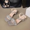 Summer New Rhinestone Word Sandals Women's Retro Ethnic Style Square Head Roman Sandals Wear Casual Fashion Sandals