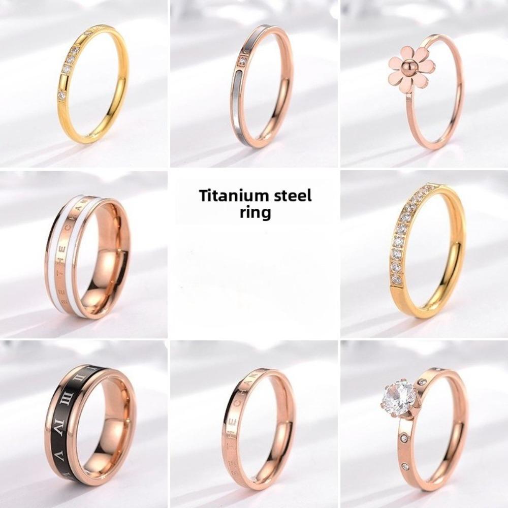 Minimalist Titanium Steel Couple Rings Non Tarnish Diamond Inlaid Matching Bands Jewelry