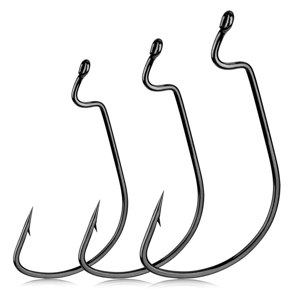 THKFISH Box Offset Hook Barbed Shank Worm Round Bend Wide Gap Offset High Carbon Steel Bass Fishing Sizes and 100-Piece Set, Hooks, Hooks, Hooks, #2,
