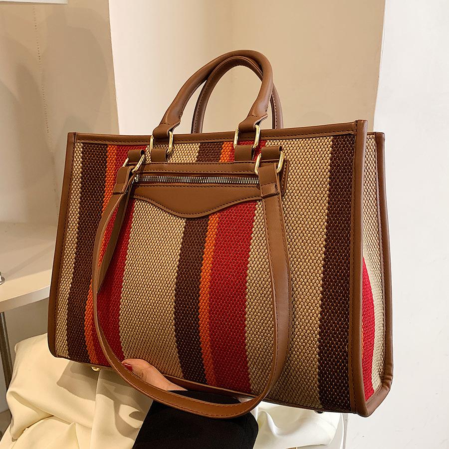 - **STRUCTURED DESIGN DETAILS**: Featuring a sleek tote silhouette, accented with specialty materials, striped patterns and metallic hardware. Available in two sizes (large/small) to suit different capacity preferences. Supports single-shoulder carrying with a 64cm fixed strap. It exudes preppy and sophisticated charm and is perfect for adding a sophisticated touch to any outfit.