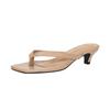 Fashion Genuine Leather Women Clip Sandals Square Toe 2025 Summer New High Heel Flip-flops Women's Outdoor Genuine Leather Slippers