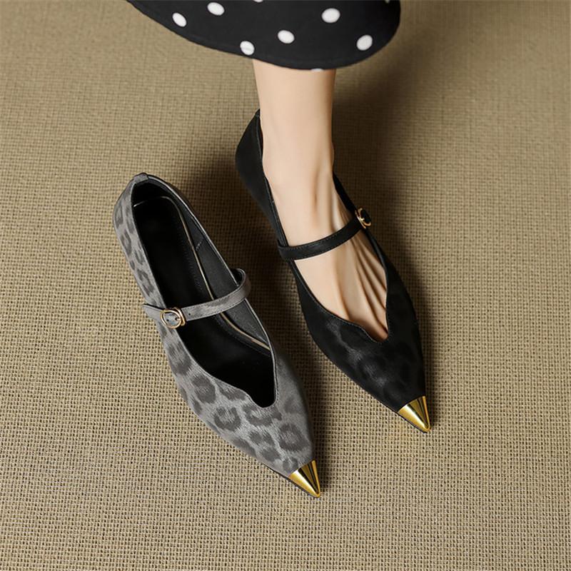 Fashion New Summer Split Leather Women Pumps Shoes for Women Fashion Leopard Print Metal Pointed Toe Mary Jane Shoes Women Ladies Shoes