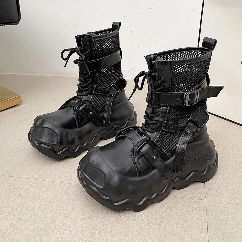 Fashion Summer Women Thick Soled Mid-Calf Boots Outdoors Lady Casual Hollow Cool Shoes Female Breathable Mesh Boots White Botas Mujer