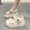 Women Summer High Platform Sandals 9CM Wedges Leather Chunky Slippers 2025 Outside Ankle Strap Sandals Beach Casual Slides Woman