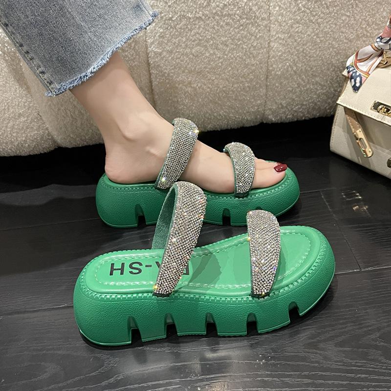 Internet Celebrity Cool Slippers Women's Summer Wear New Year's Super Fire Thick Bottom Muffin Rhinestone Fashion Fairy One-word Drag