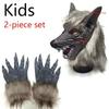 Halloween Latex Rubber Wolf Head Hair Mask Werewolf Gloves Costume Party Scary Decor Masquerade Props