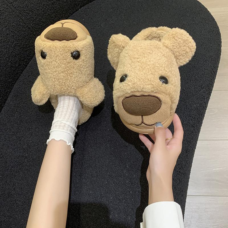 Cute Cartoon Puppy Fluffy Slippers Women's New Soft Plush Outer Wear In Autumn and Winter 2025 Anti-skid Shit Feeling