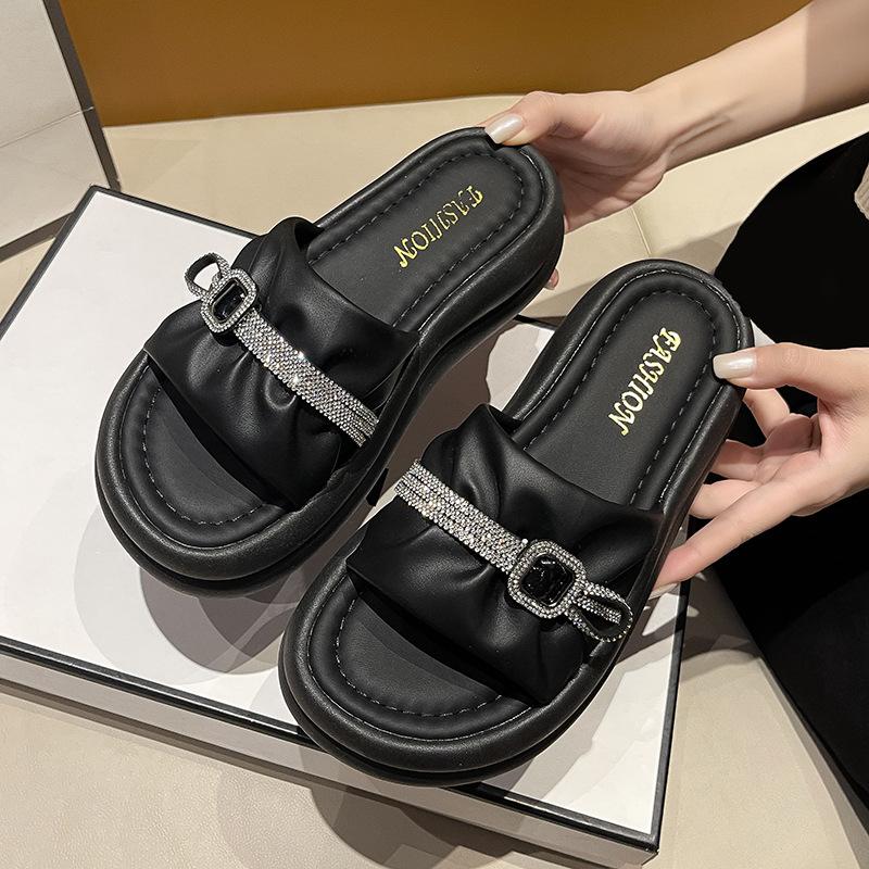 Thick-soled Rhinestone Cool Slippers for Women To Wear In Summer Thick-soled Cool Slippers One-word Drag Popular New Muffin Beach Women's Shoes