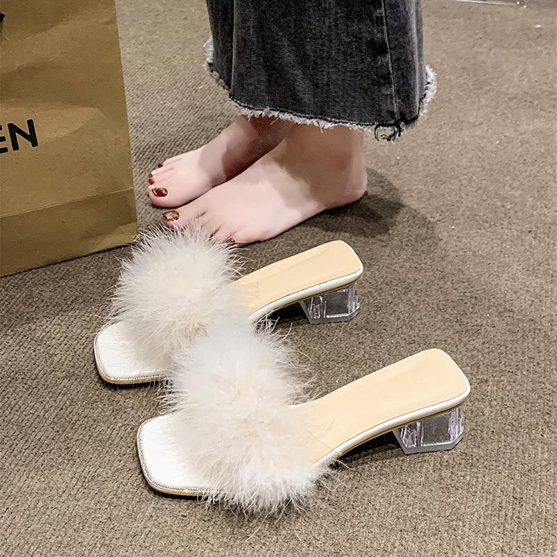 Fairy Wind Beautiful Hair Cool Slippers Female Summer Wear 2025 New Internet Celebrity Fashion Crystal Thick High Heel One-word Drag