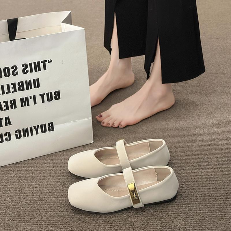 Black Square Head French Retro Xiaoxiang Flat-bottomed Mary Jane Shoes Women's Spring and Autumn New Light Mouth with Skirt Single Shoes