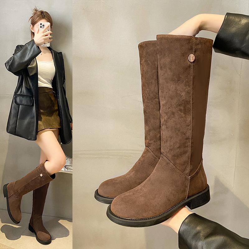 2025 New Knee-length Fashion Boots Knight Boots Matte Suede British Style Round Head Low Heel Niche Thin Boots
