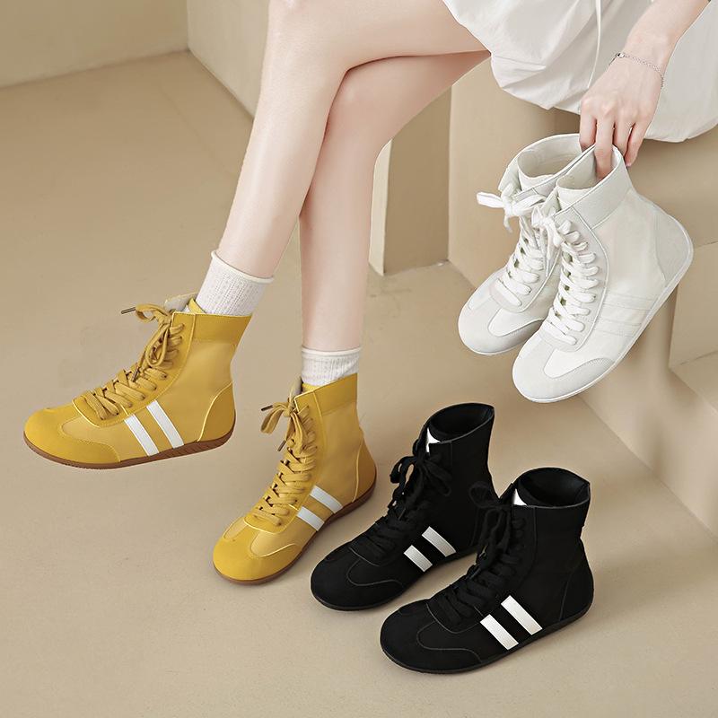 European Products Popular Flat-bottomed German Training High-top Shoes Women's 2025 Spring and Summer New Versatile Casual Shoes Lace-up Short Boots