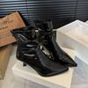 Patent Leather Trend Thin Boots High Heel Short Boots 2025 Autumn and Winter New European and American Versatile Pointed Thin Heel Black Short Boots