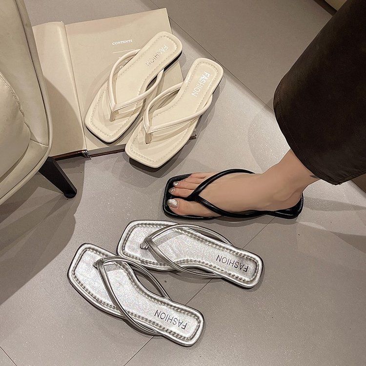 Flat-bottomed Silver Flip-flops Women's Shoes Summer 2025 New Niche Versatile Outer Wear Toe Beach Sandals