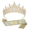 Luxury Crystal Crown & Sash Set for Birthday Girl