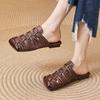 Brown Woven Bag Head Slippers Women's Summer 2025 New Soft Bottom Not Tired Feet Retro Square Head Casual Half Slippers