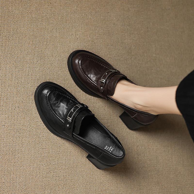 British Style Platform Thick Heel 2025 Autumn New Deep Mouth Single Shoes Commuter High Heel Small Leather Shoes Loafers Women