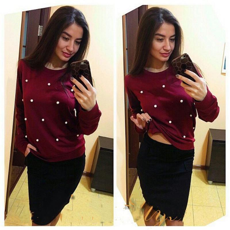 European and American Pearl-Embellished Long-Sleeve Sweatshirt