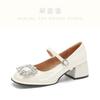 Shallow Rhinestone Mary Jane Shoes Women's French Retro Thick Heel with Daily Skirt High Heel Red Bridesmaid Shoes