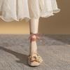 Dry Rose Camellia Princess Shoes Square Head Ballet Straps Girls Single Shoes Flat Fairy Bridesmaid Shoes Mary Jane